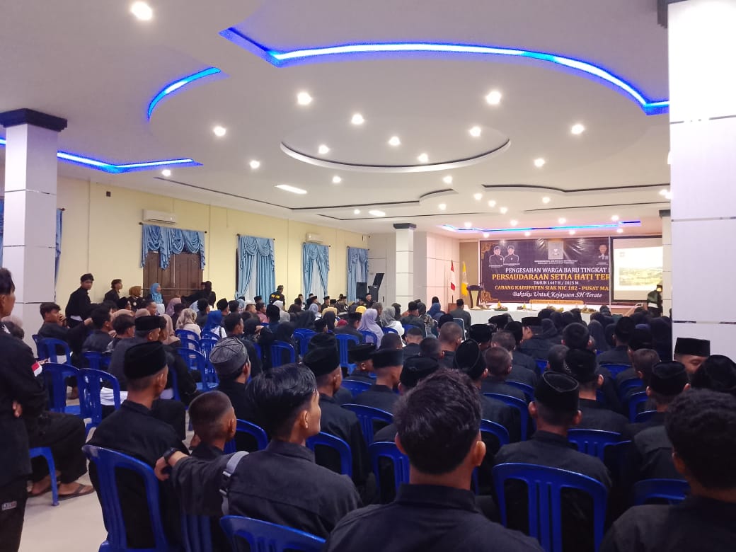 Siak,lintas10.com- Persaudaraan Setia Hati Terate (PSHT) Cabang Siak Pusat Madiun menggelar pengesahan (Wisuda) 102 calon warga baru tahun 2025 di gedung Tengku Mahratu Minggu (6/7/2025).acara tahunan itu dihadiri Wakil Bupati Siak Syamsurizal S.Ag ,M.Si, Wakil Ketua 1 DPRD Siak, Kepala Dinas Pemuda Dan Olah Raga Safirzal, Ketua IPSI Kabupaten Siak Irwan Priyatna, Ketua Cabang PSHT Cabang Siak Sunarto, Perwakilan Perguruan IKSPI, Kemenyan Putih, Sekretaris Camat, Ketua Dewan Cabang PSHT Budi Sunyoto didampingi para dewan pengesah, ketua Ranting se Kabupaten Siak, Orang Tua calon warga, Ratusan Warga Sekabupaten Siak.